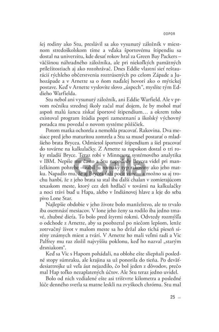 V románe Odpor Stephen King na veľkej ploche majstrovsky vykresľuje uveriteľný postapokalyptický svet, ale aj oveľa desivejšie zákutia ľudskej duše.