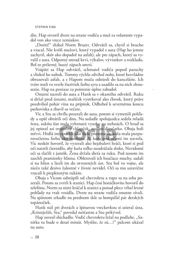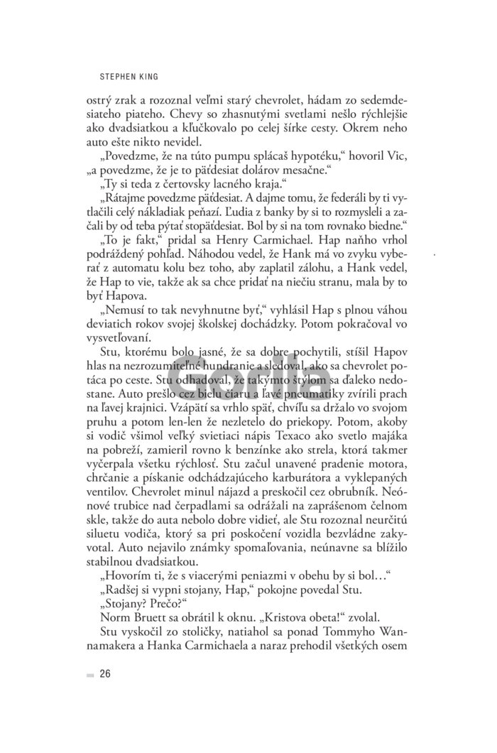 Na začiatku dochádza k zlyhaniu ľudského faktora, na konci zem posievajú mŕtvoly. Nedostatky v zabezpečení laboratória na vývoj biologických zbraní a príliš starostlivý otec mladej rodiny spôsobia únik smrtiaceho vírusu superchrípky. Nezastaviteľná choroba v priebehu niekoľkých týždňov vyhladí viac ako deväťdesiatdeväť percent svetovej populácie, zvyšky sa brodia v troskách civilizácie. Tí, čo prežili, sa vydajú na cestu – tajuplné sny ich ako magnet priťahujú do Las Vegas, kde sa usídlil muž s mnohými menami a podobami, alebo k domčeku uprostred kukuričných polí. Ten obýva staručká Matka Abagail, ktorej Boh dožičil dlhý život, aby mu pomohla naplniť Plán. Svet sa ešte len spamätáva z katastrofy a na šachovnici dobra a zla sa už rozohráva partia, v ktorej sa komunita na strane svetla musí postaviť na odpor temnote. Zvíťazí temný muž, ktorý ovláda mágiu, alebo starena, ktorá si aj v úctyhodnom veku stoosem rokov sama pečie koláče?