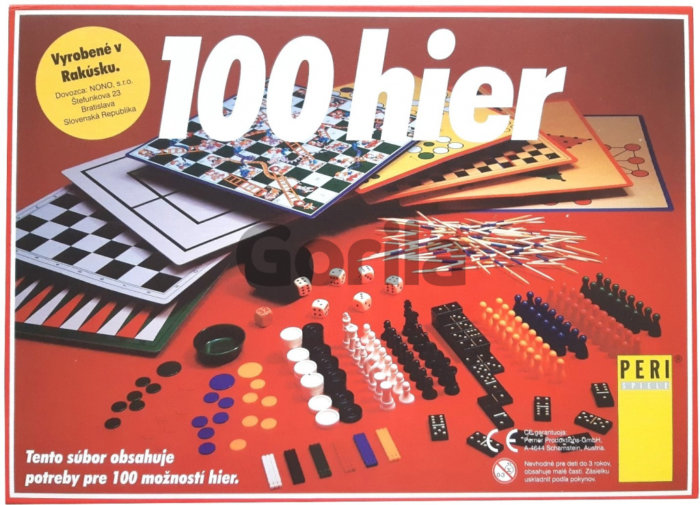 Súbor hier obsahuje potreby pre 100 možností hier. Vo vnútri balenia nájdete štyri obojstranné herné plány (spolu 8 herných plánov), rôzne figúrky, kocky, pohárik na kocky, mikádo... Návod na rôzne druhy hier nájdete vo vnútri balenia.