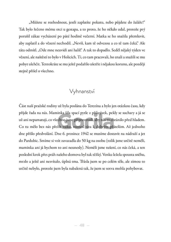 Příběh Hany Sternlicht v sobě zrcadlí úděl židovského obyvatelstva českých zemí 20. století. I větve její rodiny brutálně uťal holokaust. Hana ovšem měla, na rozdíl od svých rodičů, to štěstí, že pekelnou cestu vedoucí z východočeských Holic přes Terezín, Osvětim a Mauthausen přežila. A její pouť za svobodou tak mohla pokračovat i po válce, kdy ji dovedla až na nový začátek v Izraeli. Na přání své rodiny se nyní rozhodla vyprávět svůj příběh, aby doba zla nevymizela z paměti.