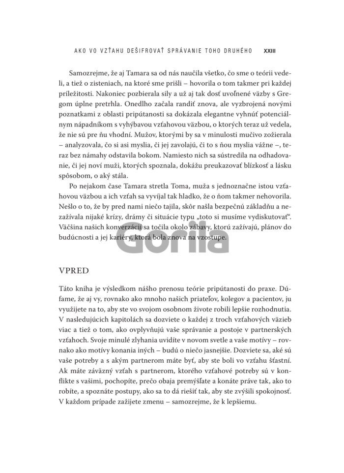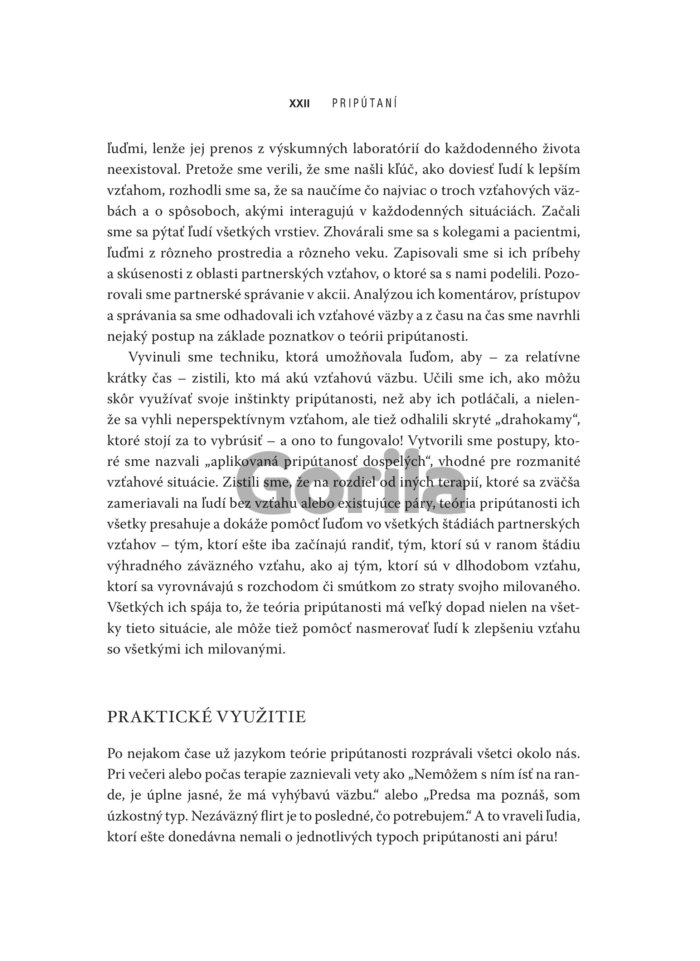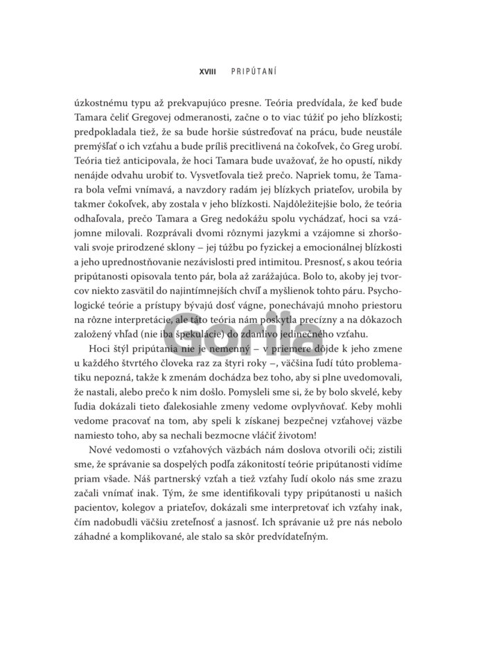 Ide o kľúčový poznatok, ktorý dokáže spoľahlivo vysvetliť správanie človeka v akýchkoľvek väzbách s inými ľuďmi. A nielen to. Spoznaním vlastného aj partnerovho štýlu pripútanosti, uvedomením si jeho slabých stránok a vedomým uplatňovaním princípov bezpečného typu pripútanosti je možné zmeniť spôsob, akým sa k sebe navzájom správame a zlepšiť partnerský vzťah tak, aby sme v ňom našli hlboké uspokojenie. Nezadaným zas tieto poznatky pomôžu nájsť lásku a vytvoriť si s druhou osobou spojenie, ktoré bude mať šancu na dlhodobý úspech.