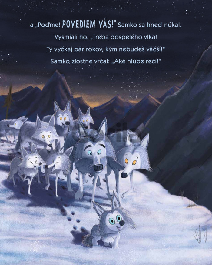 Malý a tvrdohlavý vĺčik Samko odmieta poslúchať. Považuje sa za dospelého a najmúdrejšieho. Keď sa vlčia svorka musí presťahovať, pretože ich noru zabrali ľadové medvede, vo svojej pýche sa vnúti dospelým vlkom za vodcu. Ani sa nenazdá a ocitne sa sám, samučičký v šírych pláňach arktickej krajiny. Vtedy pochopí, že sila spočíva v čomsi inom – v priateľstve.