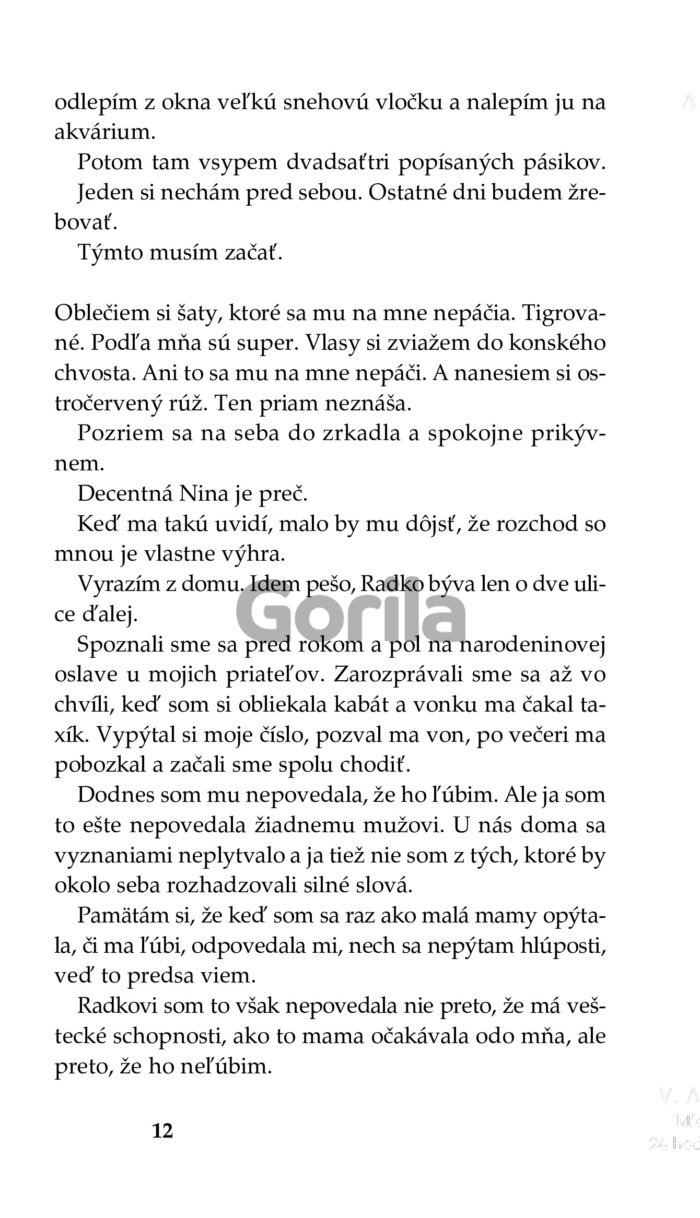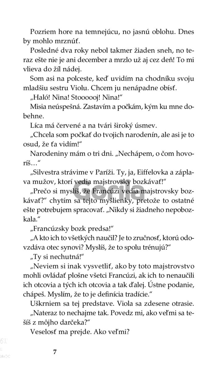 Nina má dobre platené miesto, skvelé kolegyne a čoskoro ju povýšia. Práca ju však vôbec nenapĺňa. Má perspektívny vzťah so spoľahlivým mužom, ktorý ju má úprimne rád. Ona ho však nemiluje. Čaká ju predĺžený víkend v Paríži, na ktorý sa ani trochu neteší. A na dosah ruky má dokonalý byt, do ktorého sa netúži nasťahovať.