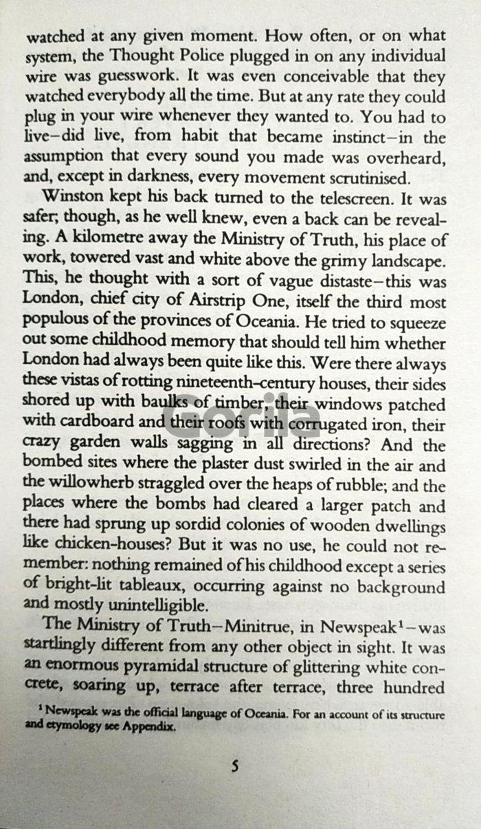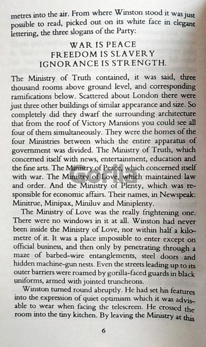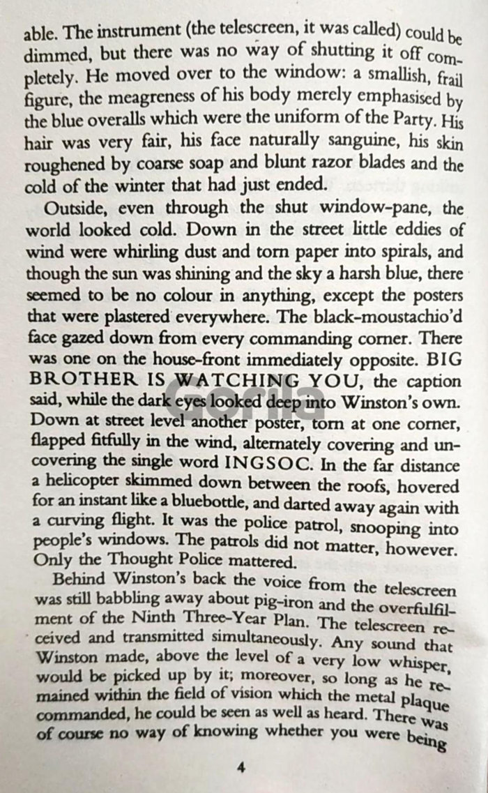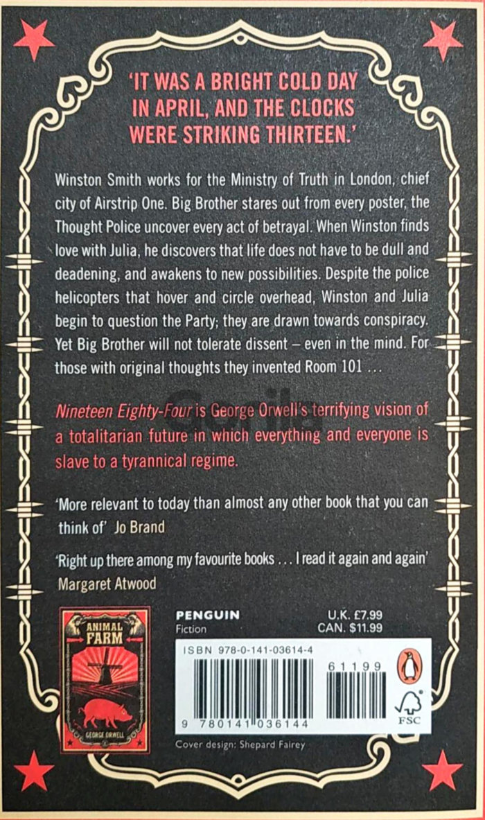 Winston Smith works for the Ministry of Truth in London, chief city of Airstrip One. Big Brother stares out from every poster, the Thought Police uncover every act of betrayal. When Winston finds love with Julia, he discovers that life does not have to be dull and deadening, and awakens to new possibilities. Despite the police helicopters that hover and circle overhead, Winston and Julia begin to question the Party; they are drawn towards conspiracy. Yet Big Brother will not tolerate dissent – even in the mind. For those with original thoughts they invented Room 101 … Nineteen Eight-Four is George Orwell’s terrifying vision of a totalitarian future in which everything and everyone is slave to a tyrannical regime.