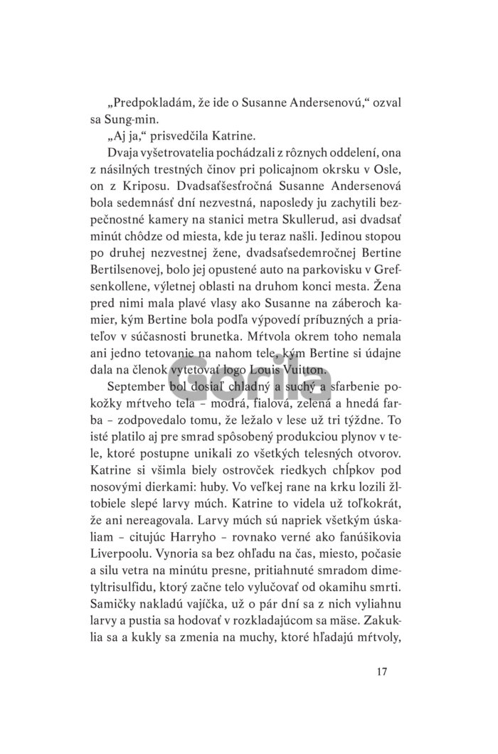 Medzitým v Osle je známy realitný magnát podozrivý z vraždy dvoch dievčat. Katrine Brattová sa márne dožaduje spolupráce s Harrym, ktorého jej nadriadení považujú za skrachovaného alkoholika. Podozrivý magnát sám vyhľadá Harryho pomoc a on sa jeho ponuku rozhodne prijať. Ak prípad vyrieši, získa bonus, ktorým splatí Lucillin dlh Mexičanom.