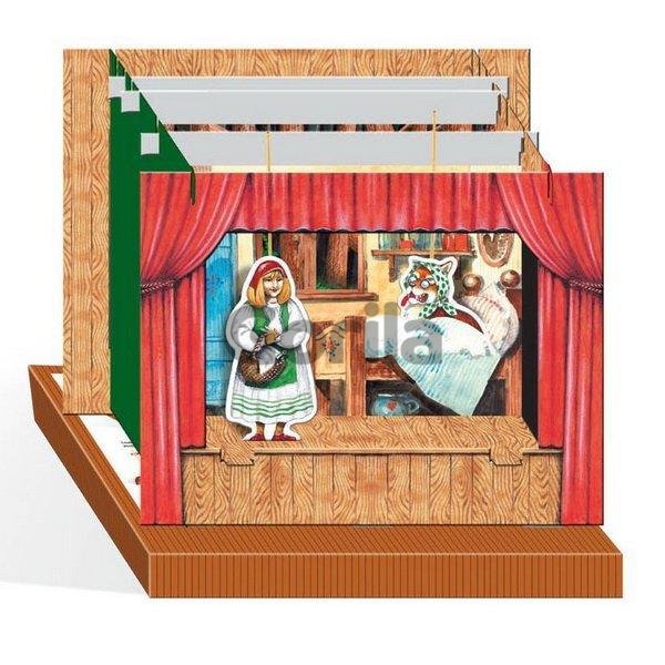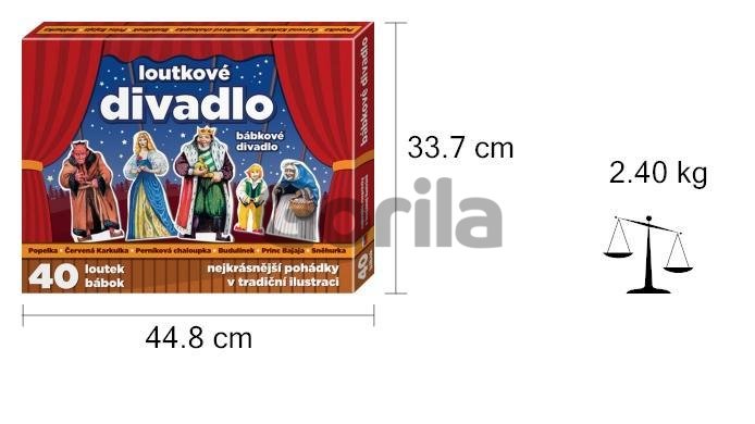 Bábkové divadielko je tradičná česká hračka, ktorá rozvíja tvorivosť a podporuje predstavivosť. Obsahuje 28 bábok, kulisy a rôzne doplnky. Súčasťou je celkom 10 prostredí, ktoré sú univerzálne použiteľné Vyrobené z vysokoakostného laminovaného kartónu. Súčasťou balenia je podrobný divadelný scenár rozprávok O červenej čiapočke a O perníkovej chalúpke a stručný obsah ďalších troch rozprávok. Vhodné pre deti od 3 rokov. Balenie obsahuje: scénu z tvrdeného kartónu s rozmermi 35 x 44 cm, ktorú ľahko zostavíte aj rozložíte, ďalej 10 univerzálnych kulís, bočné doplnkové kulisy, funkčné kulisy (otváracia truhla s pokladom), 40 obojstranných figuriek a 7 rozprávok (aj s divadelným scenárom) v českom a slovenskom jazyku.