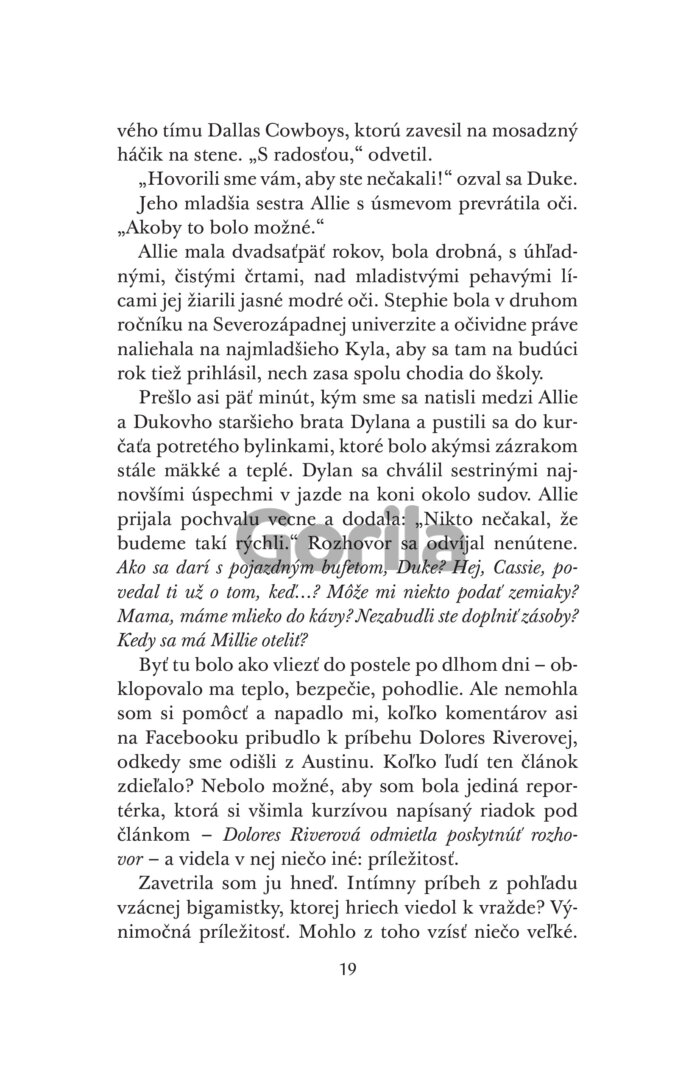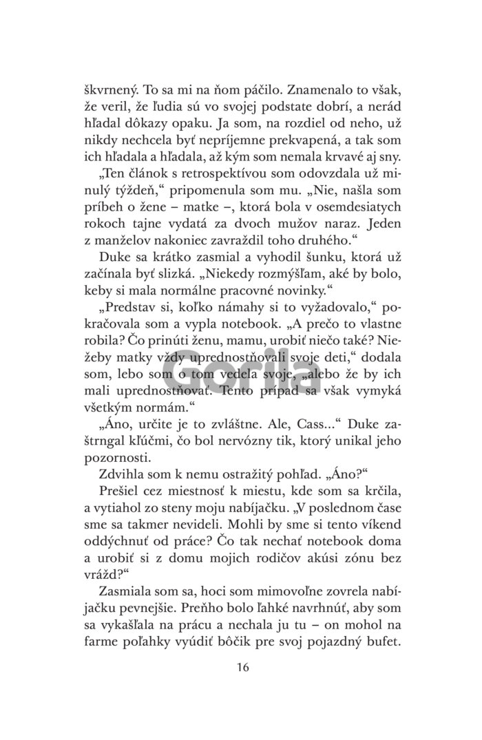 Po viac ako tridsiatich rokoch sa k prípadu vracia spisovateľka Cassie Bowmanová, ktorú odmalička fascinovali pravdivé kriminálne príbehy. Sama vie, aké komplikované môžu byť rodinné pomery, a prekvapí ju, keď Lora súhlasí s rozhovorom. Ako sa ženy postupne zbližujú, Cassie odhaľuje nielen vlastné temné tajomstvá, ale začína si uvedomovať, že v noc Andresovej vraždy mohlo byť všetko inak, ako sa zdá. Nájdu obe dosť odvahy čeliť pravde?