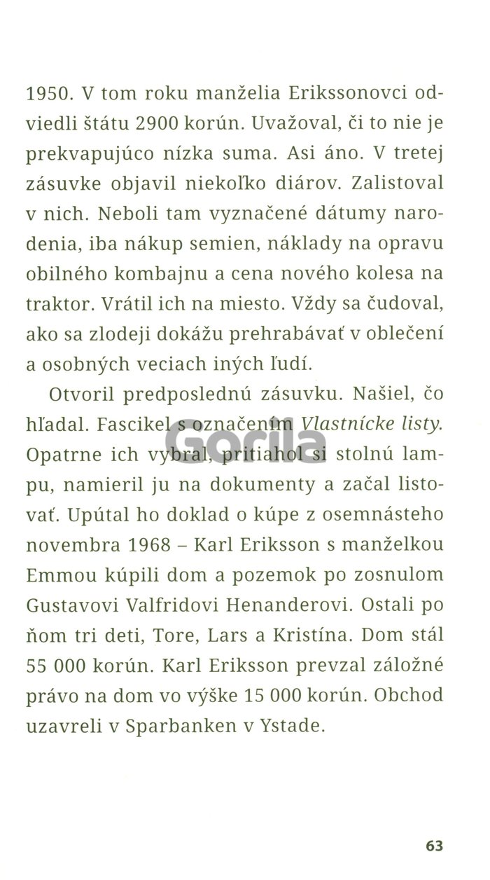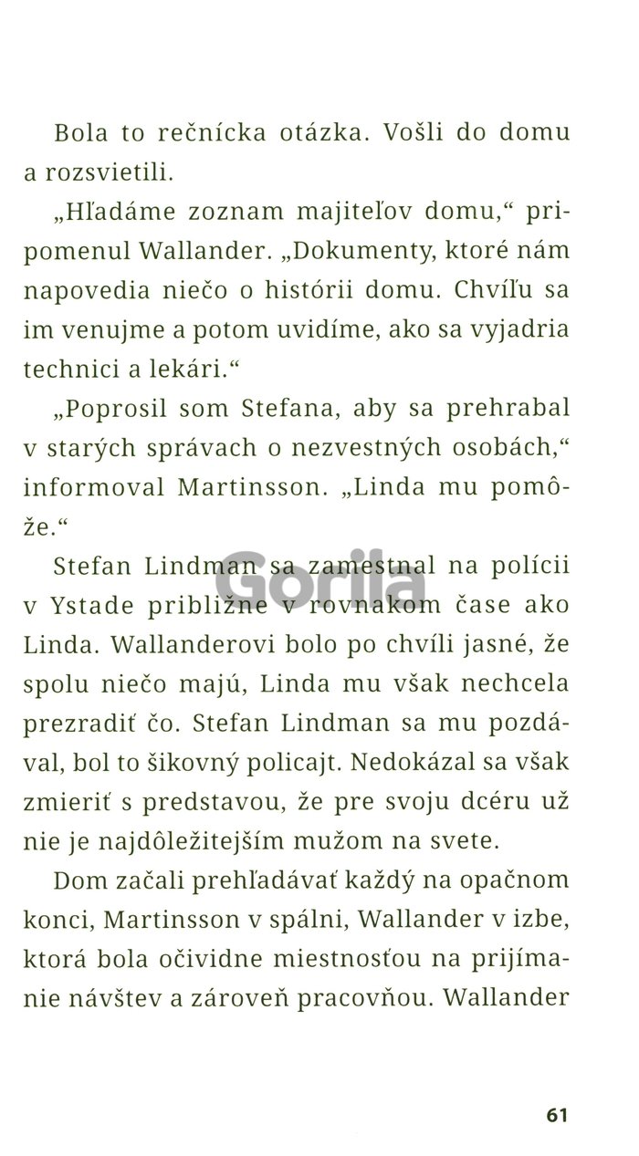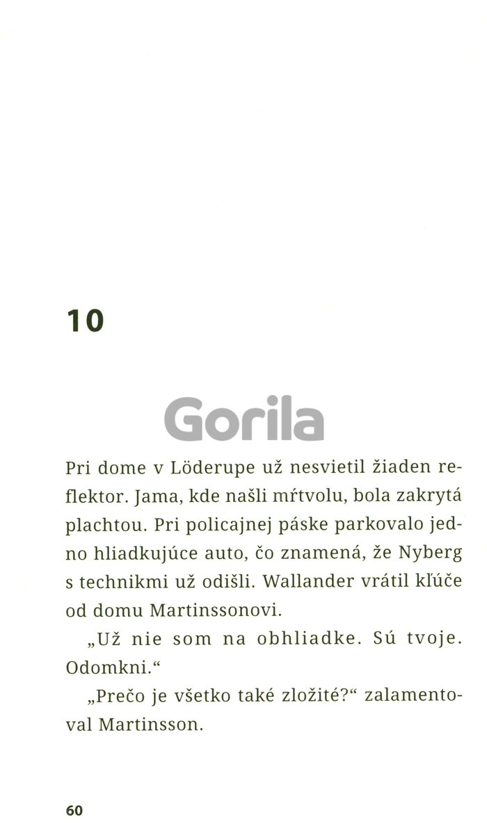 Jedného jesenného dňa sa komisárovi Wallanderovi naskytne príležitosť splniť si dlhoročný sen a presťahovať sa na vidiek. Ten sa však veľmi rýchlo zmení na nočnú moru. V záhrade vytúženého domu nájde dve mŕtvoly, päťdesiat rokov zakopané v zemi. O koho ide? Ako je možné, že nikomu nechýbajú? Wallander musí načrieť do minulosti, aby toto tajomstvo rozlúštil. Stopy ho privedú k tragédii, kde nevedno určiť, kto je obeť a kto páchateľ.