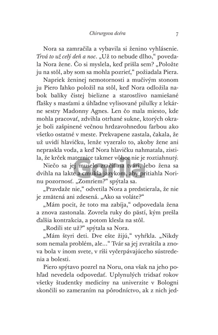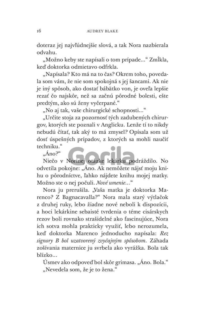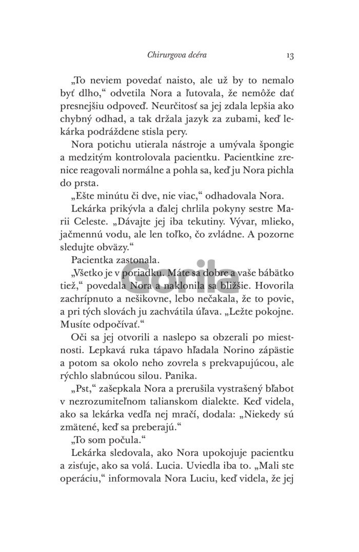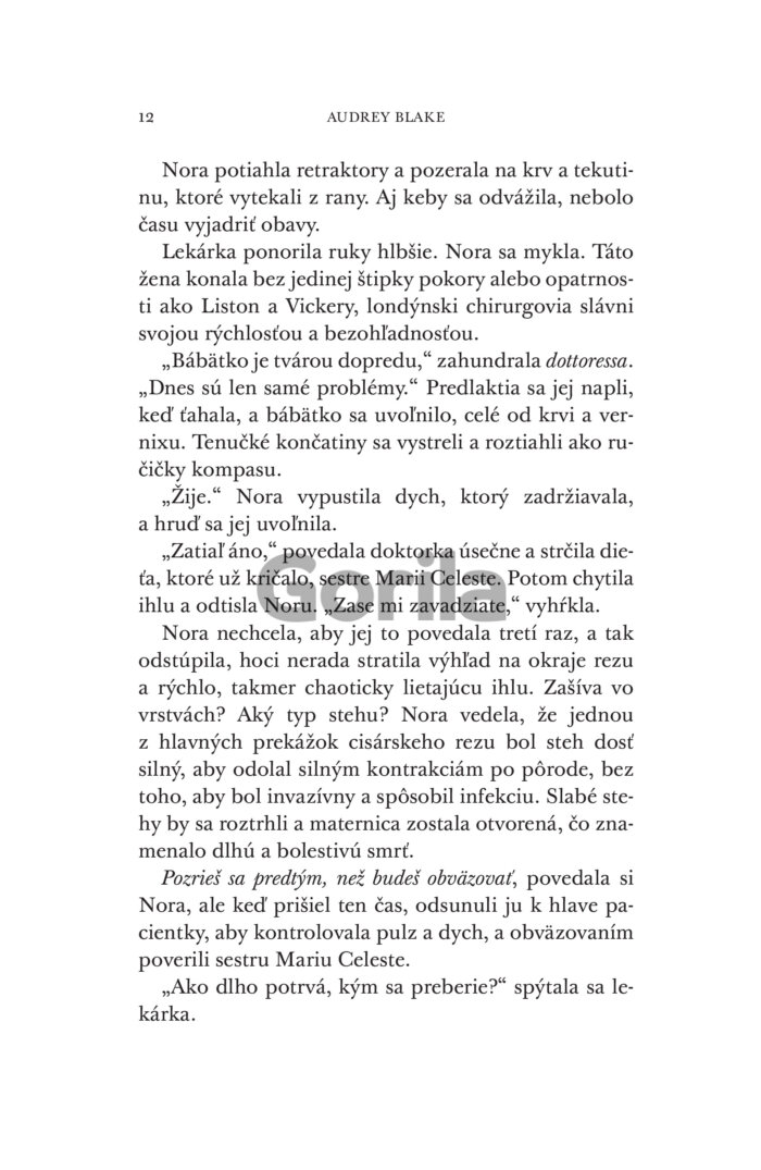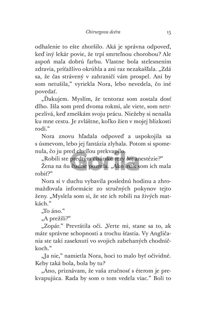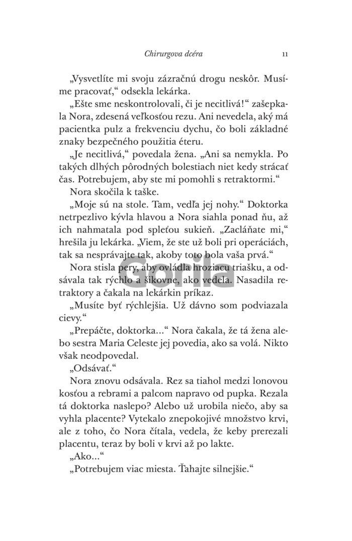 Keď Nora natrafí na pacientku, ktorá bez tejto operácie zomrie, čelí odporu zo všetkých strán a bezmocnosti. Ak sa zákrok podarí, mohla by zmeniť svet. Za neúspech však zaplatí všetkým – vzácnymi životmi, kariérou aj úlohou, ktorú ženám dovolia hrať v medicíne.