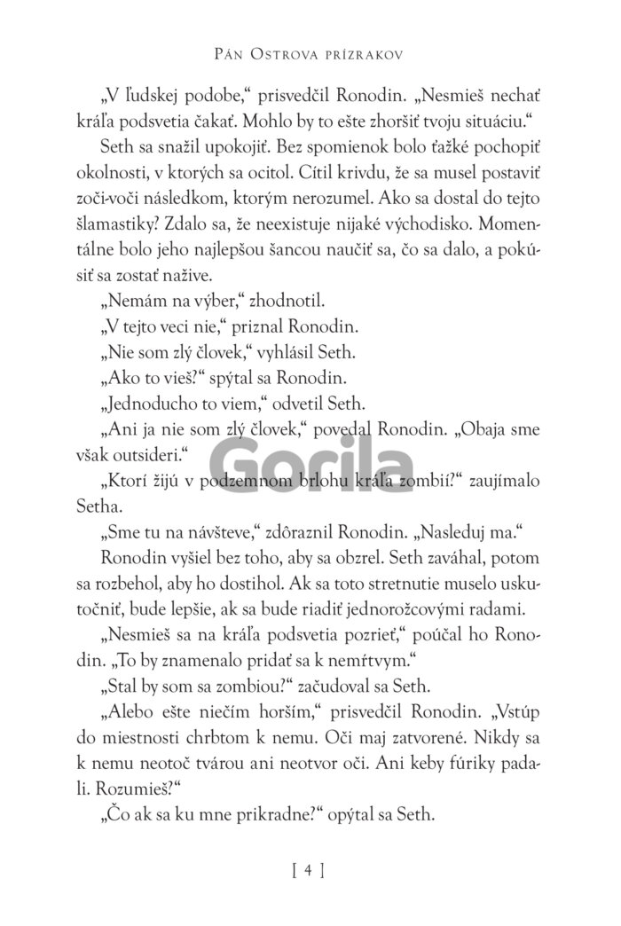 Seth vinou kúzla Kľúča zabudnutia príde o všetky spomienky z minulosti – nepamätá si svojich blízkych, nespomína si na zážitky a nevie, kto vlastne je. Spojí sa so svojím novým učiteľom Ronodinom, s temným jednorožcom, ktorý ho odvedie na Ostrov prízrakov, k tajnej bráne do podsvetia. Hoci Seth v skutočnosti nie je jeho väzeň, Ronodin zamýšľa využiť jeho schopnosti zaklínača tieňov na dosiahnutie vlastných zákerných cieľov.