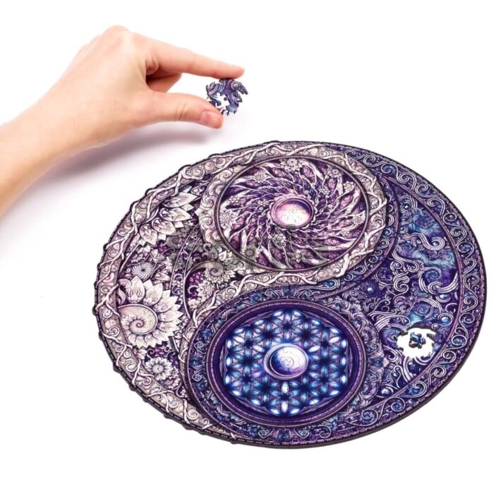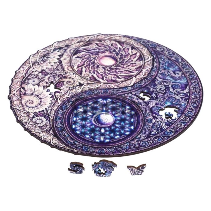 350 dílků s jedinečnými tvary: Dílky puzzle od UNIDRAGON mají jedinečné tvary a design. V tomto puzzle v podobě mandaly se spojují emoce a rozum, slunce a měsíc, nebe a země, světlo a tma v podobě Jin a Jang.