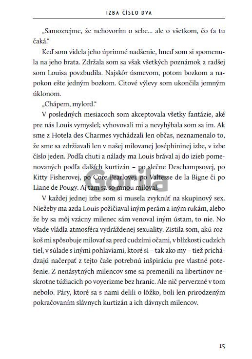 Paríž, hotelová izba neskoro popoludní… Annabelle a Louis sa v izbe číslo jeden v Hoteli des Charmes vo vášnivom objatí oddávajú svojim túžbam, do najmenších podrobností skúmajú svoje telá a plnia si najtajnejšie erotické priania. Ale tieň tajomnej minulosti rodiny Barletovcov postupne dopadá aj na ich šťastie... Druhý diel vášnivej erotickej trilógie, ktorá sa pokladá za francúzsku odpoveď na Fifty Shades of Grey.