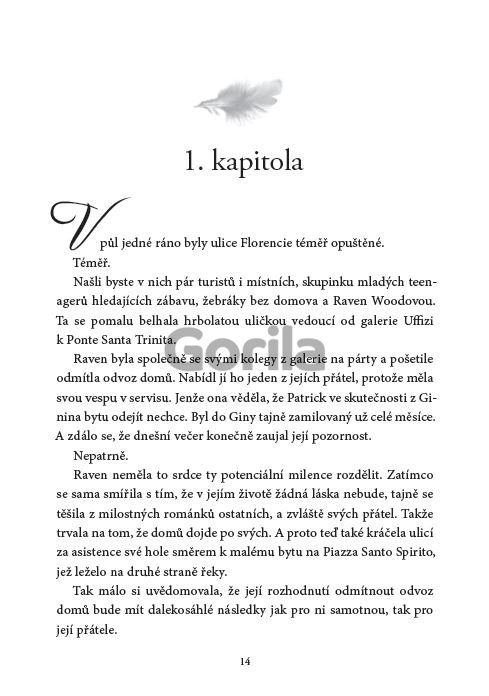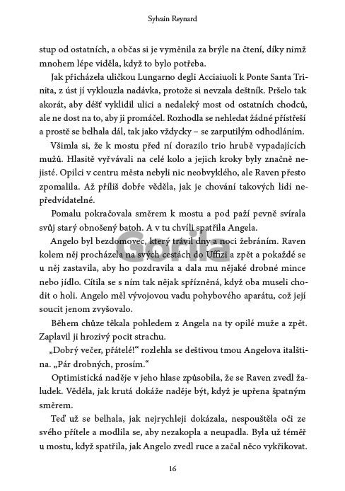 První díl plánované trilogie od autora bestsellerové série Gabrielova trilogie. Raven Woodová restauruje ve florentské galerii Uffizi renesanční umělecká díla. Její život navždy změní jedna nevinná cesta z večírku. Když se stane svědkem nesmyslného útoku na bezdomovce, útočníci se posléze obrátí i na ni a zatáhnou ji do úzké uličky. Raven už je napůl v bezvědomí, když útočníky vyruší kakofonie vrčení, po které následuje křik jich samotných. Raven naštěstí upadá do milosrdné temnoty, ale až poté, co zběžně zahlédne stín postavy, která jí šeptá: Cassita vulneratus. Když se Raven probere z bezvědomí, je nenávratně poznamenaná. Vrátí se do galerie Uffizi, ale nikdo ji nepoznává a co je ještě znepokojivější, zjišťuje, že v práci nebyla celý týden. Během jejího zmizení, které si sama nedokáže vysvětlit, došlo v galerii Uffizi k loupeži - zmizely Botticelliho ilustrace nevyčíslitelné hodnoty. Bezradná policie Raven označí za hlavního podezřelého a ta se zoufale snaží očistit své jméno. Vyhledá jednoho z nejbohatších obyvatel Florencie a těžko polapitelného muže, aby se pokusila odhalit pravdu o svém zmizení. Jejich setkání zavede Raven do temného podsvětí, jehož obyvatelé si střeží svá tajemství…
