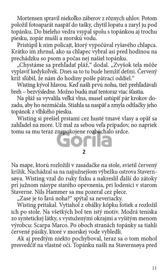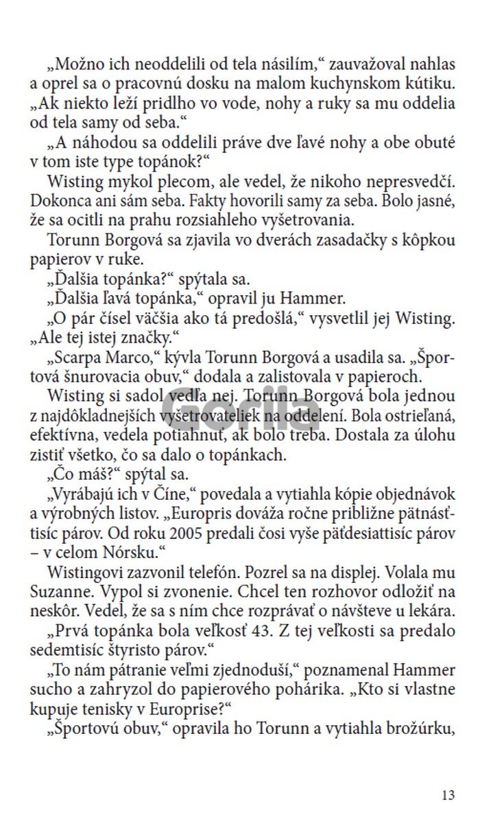 More vyplaví na breh odseknutú ľavú nohu v topánke a čoskoro na to druhú – opäť ľavú. A potom zrazu nájdu na pláži aj tretiu a štvrtú. Tieto štyri odseknuté končatiny, ktoré sa objavia v priebehu jedného letného týždňa, sú jadrom záhady. Kto sú obete? A ako súvisí ich smrť s niekoľkými nahlásenými prípadmi zmiznutia bez stopy? Wisting neverí na náhody a pri vyšetrovaní sa spúšťa až na samé dno zla, akého je len človek schopný.