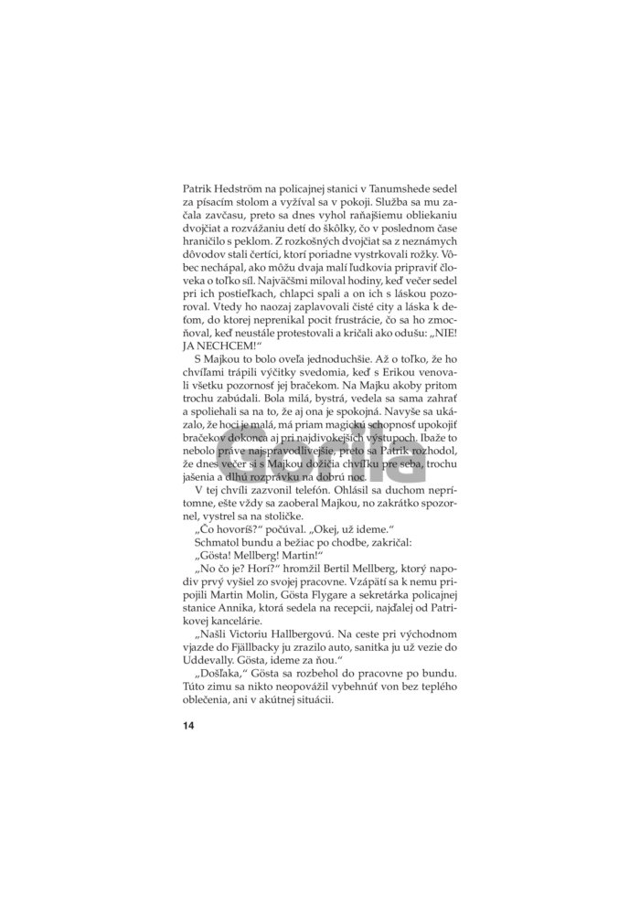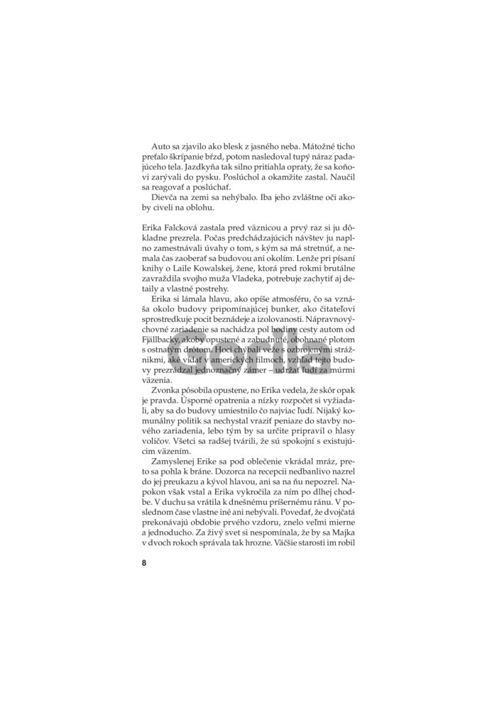Camilla Läckberg vyštudovala ekonómiu a spočiatku v tomto odbore pracovala. Vždy sa však túžila stať spisovateľkou a dnes sa radí medzi najúspešnejšie švédske autorky krimi románov. Je január a Fjällbacku drží v zovretí tuhý mráz. Cez zasnežený les sa k hradskej potáca polonahé dievča. Na ceste sa však ako blesk z jasného neba vynorí auto a šofér nestíha zabrzdiť. Keď Patrik Hedström a jeho kolegovia dostanú správu o nešťastí, dievča je už identifikované. Zmizlo pred štyrmi mesiacmi cestou z tamojšej jazdeckej školy a odvtedy ho nikto nevidel. Podľa výsledkov pitvy bola dievčina vystavená mučeniu, a ak polícia prípad rýchlo neobjasní, hrozí, že podobný osud čaká aj iné mladé ženy.