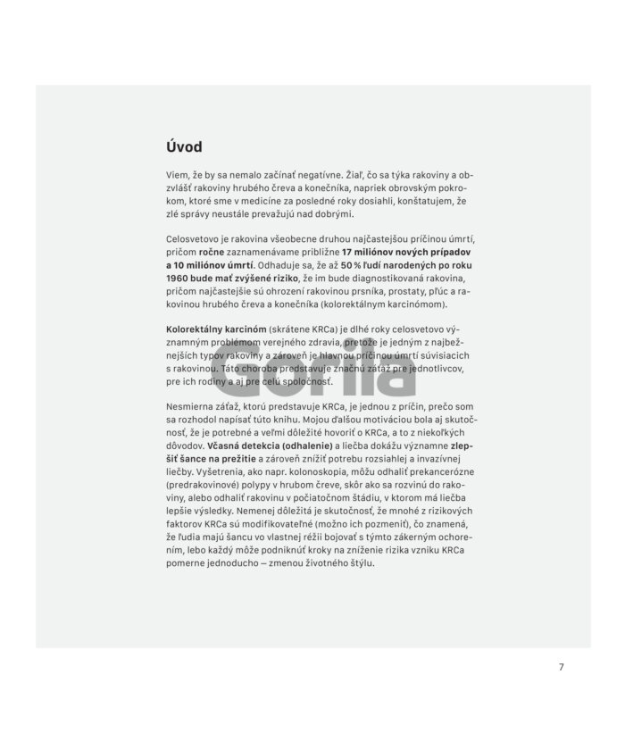 V tejto stručnej príručke nabitej informáciami a najnovšími vedeckými zisteniami vám jeden z najznámejších slovenských gastroenterológov doktor Kužela objasní, kde číha najväčšie nebezpečenstvo pri vzniku rakoviny hrubého čreva. Vysvetlí vám, ako s týmto ochorením súvisí životný štýl, aké škody môže napáchať nezdravo pripravené mäso, prečo sú rastliny pri znižovaní rizika vzniku rakoviny také zázračné a prečo je kolorektálny karcinóm strašiak, ktorého sa naozaj treba báť.