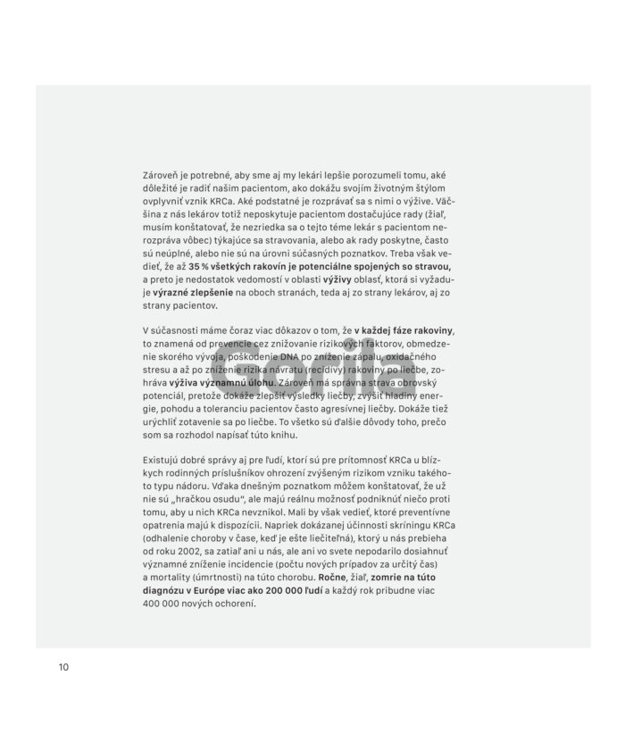 Súčasná lekárska prax sa zameriava predovšetkým na vyhubenie nádorových buniek pomocou rôznych zákrokov a liečby. Iba málo lekárov a lekárok sa však s pacientami rozpráva o životnom štýle, ktorý má obrovský význam pri prevencii aj pri znížení rizika návratu rakoviny.