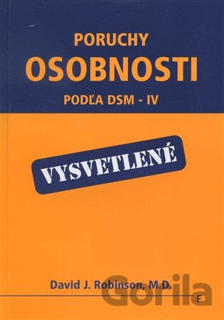 D.J. Robinson Poruchy osobnosti - podľa DSM-IV Často si povieme: "Ten človek má zvláštnu povahu!" Často je pre nás dôležité, aby sme takému človeku lepšie rozumeli. Porozumenie ako pacientov postihujú malaadaptívne osobnostné črty je dôležité v každom klinickom odbore, nie iba v oblasti psychiatrie. Hlavným zámerom tejto knihy je napomôcť rozpoznaniu osobnostných porúch a porozumeniu ich etiológie a liečby. Tento text bol napísaný, aby poskytol čitateľom praktický, stručný a pútavý úvod pre porozumenie poruchám osobnosti. Kniha je kondenzovaným výberom z : Field Guide to Personality Disorders. "DSM-IV", uvedené v názve knihy, je skratka z "Diagnostic and Statistical Manual of Mental Disorders, Fourth Edition", t.j. Diagnostický a štatistický manuál duševných porúch, štvrté vydanie. Manuál vypracovala Americká psychiatrická asociácia.