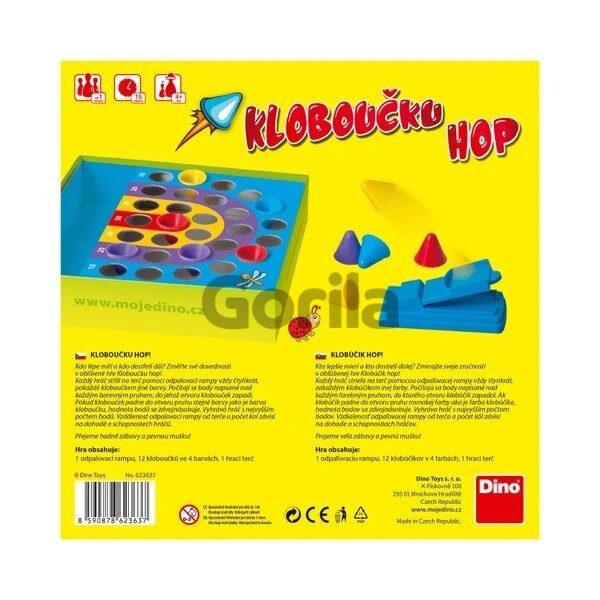 Klobouk dolů před každým, kdo se trefí všemi kloboučky do správných otvorů. Dětská hra Kloboučku Hop, při které svou mušku rádi změří i dospělí, už je téměř legendou. Každý hráč má vždy čtyři kloboučky,od každé barvy jeden a musí je z odpalovací rampy poslat směrem k terči tak, aby zůstaly v připravených otvorech. Boduje se podle dosaženého pásma, pokud klobouček padne do otvoru pruhu stejné barvy jako je barva kloboučku, hodnota bodů se zdvojnásobuje.