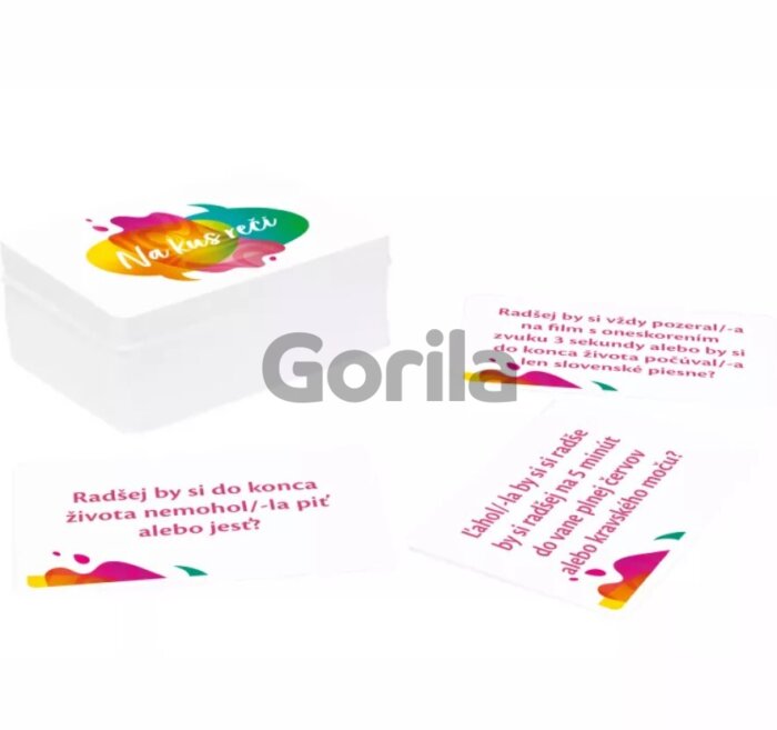 Mali by ste radšej tretiu nohu alebo ruky dlhé až po zem? Vitajte vo svete bizarných otázok a neľahkých rozhodnutí! S kartami Na kus reči sa ocitnete v bláznivých situáciách, v ktorých si musíte vybrať medzi dvoma šialenými možnosťami. Pobavte sa s priateľmi a nájdite odpovede na tieto absurdné dilemy.
