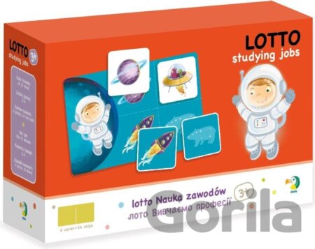 Zábavná dětská hra Lotto dětem přiblíží nejrůznější lidské profese. Princip hry je podobný jako u klasického Binga. Každý hráč si vylosuje jednu kartičku a tu se následně snaží zaplnit odpovídajícími obrázky. Komu se podaří svou kartu zaplnit jako první vyhrává. Balení obsahuje: 6 karet s motivem různých povolání 24 kartiček