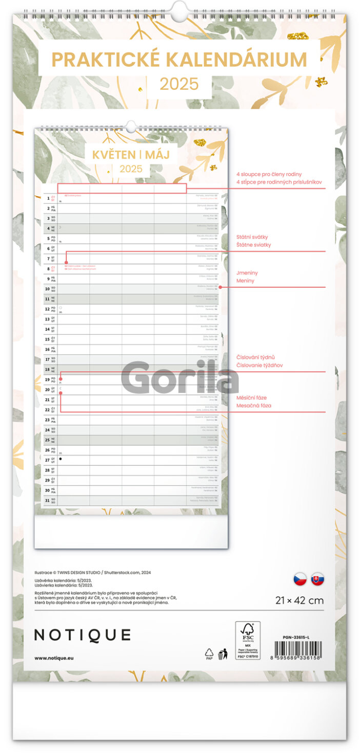 Viac o NOTIQUE nástenný Rodinný plánovací kalendár Kvety 2025