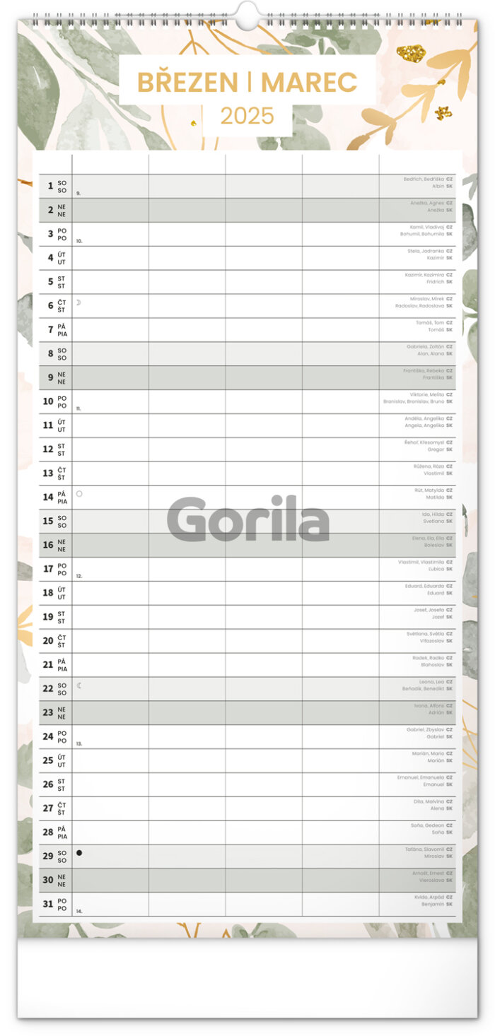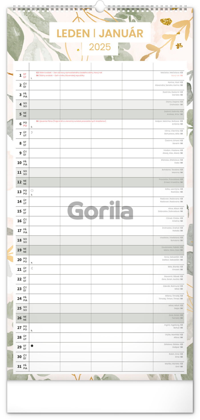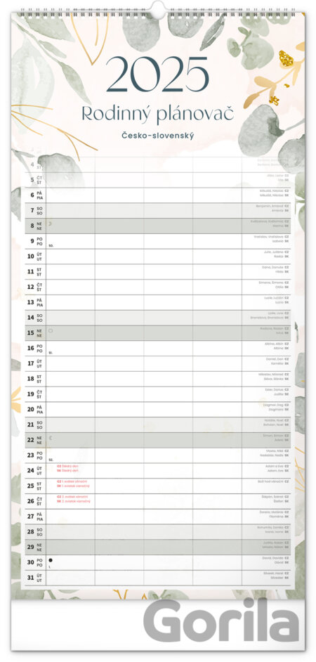 Usporiadajte si všetky rodinné aktivity v praktickom nástennom kalendári, ktorý obsahuje anglický kalendár a samostatný plánovač aktivít až pre päť členov domácnosti. Kalendár dopĺňajú kvetinové ilustrácie pre milovníkov jednoduchých motívov.