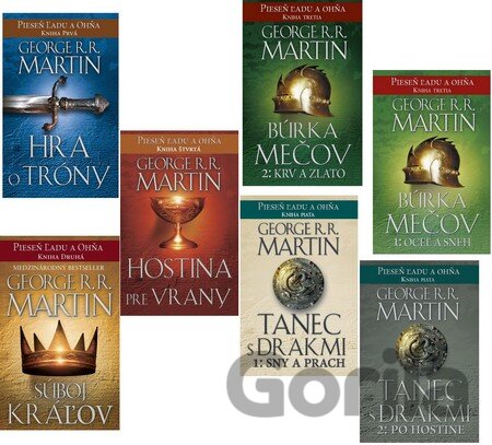 Komplet knižnej kolekcie všetkých dielov svetovej série. Pieseň ľadu a ohňa: Hra o tróny, Súboj kráľov, Búrka mečov 1: Oceľ a sneh, Búrka mečov 2: Krv a zlato, Hostina pre vrany, Tanec s drakmi 1: Sny a Prach a Tanec s drakmi 2: Po hostine ...