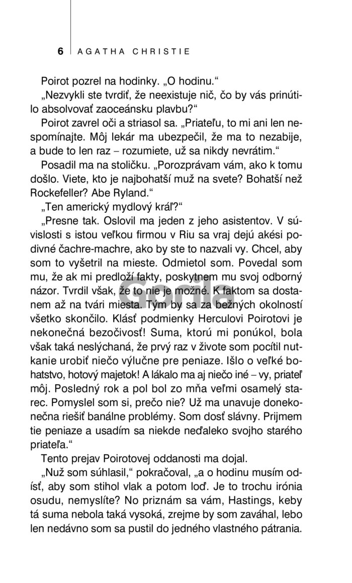 Prvá dáma anglickej detektívky nám vo svojom románe z roku 1927, ktorý vychádza v novom vydaní, predstavila Hercula Poirota v celkom inom, prekvapivom svetle: slávny detektív v ňom namiesto zvyčajného vyšetrovania prípadu vraždy vo vidieckom sídle zvádza súboj s mimoriadne nebezpečnou medzinárodnou organizáciou, usilujúcou sa ovládnuť svet.