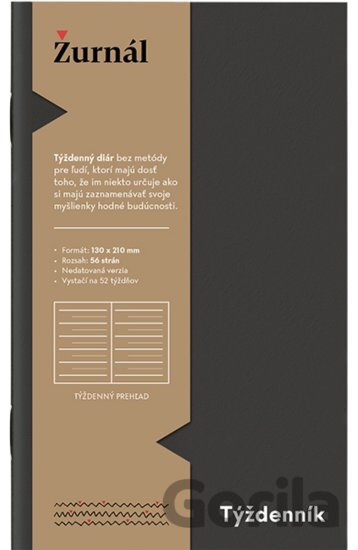 Nedatovaný diár na 52 týždňov bez akéhokoľvek balastu vo veľkosti 130x210 mm. Nič len prehľad týždňa. Ak premýšľaš, či je vhodné začať s plánovaním, Týždenník sa hlási ako prvý kandidát na skúšku.