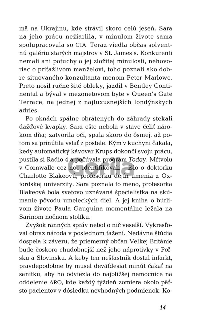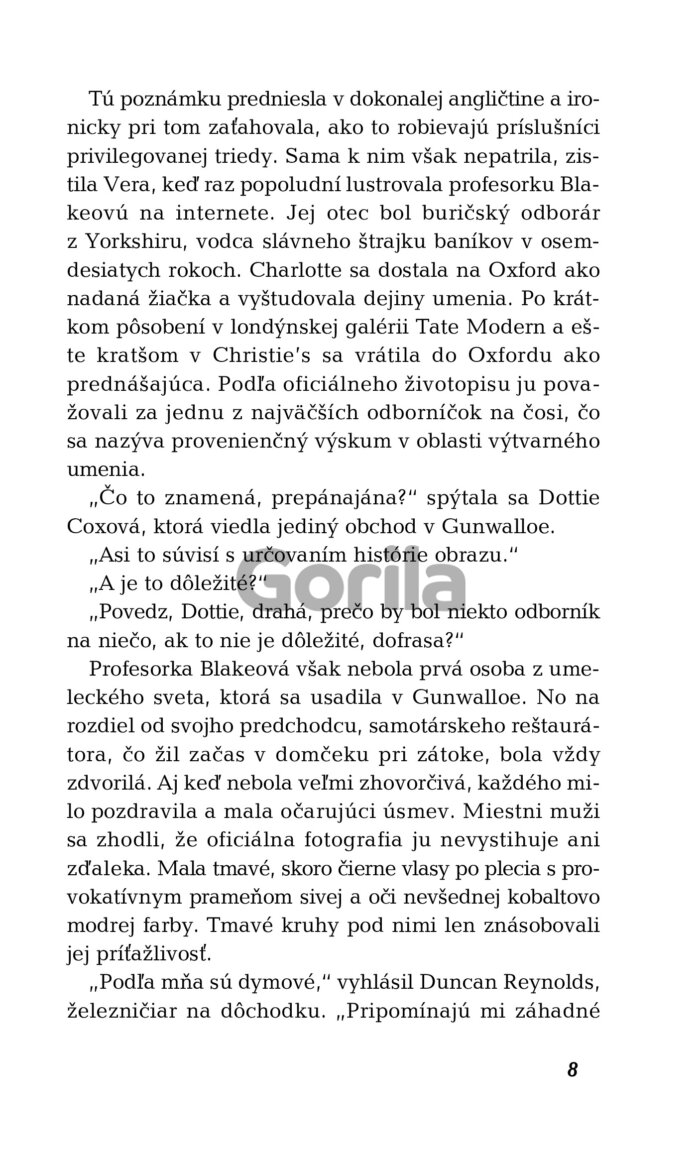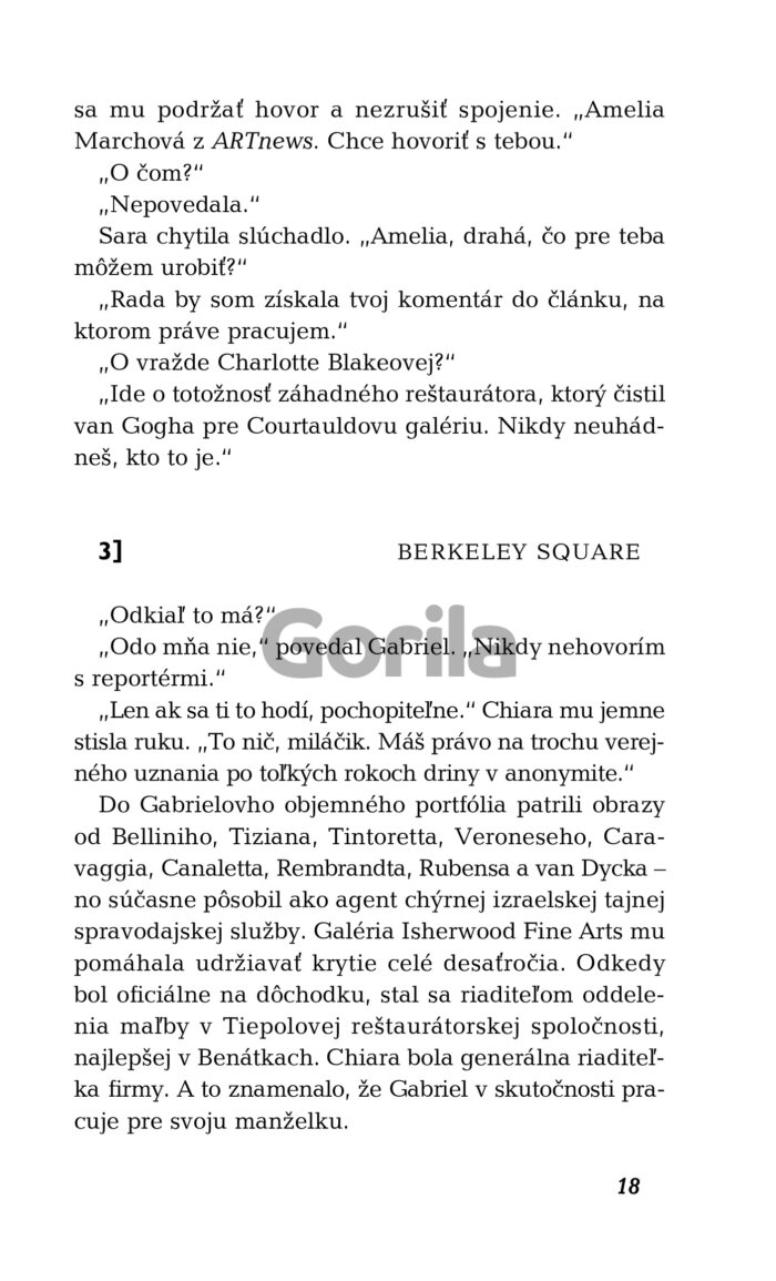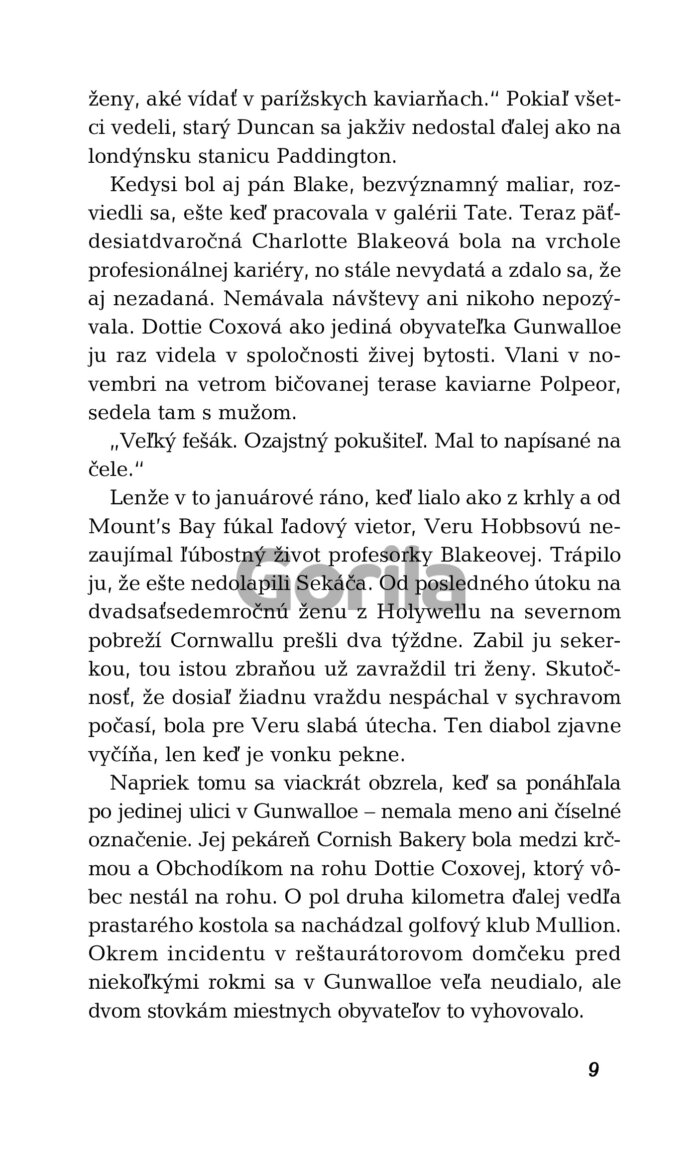 Obeťou je Charlotte Blakeová, renomovaná profesorka dejín umenia z Oxfordu, ktorá býva v tej istej dedinke na pobreží, kde Gabriel kedysi žil pod falošným menom. Na prvý pohľad sa zdá, že ju zabil diabolský sériový vrah, ktorý už dlhší čas terorizuje cornwallský vidiek. Vyšetrovanie však odhalilo množstvo nezrovnalostí vrátane chýbajúceho mobilného telefónu. A je tu aj záhadná šifra z troch písmen, ktorú profesorka Blakeová zanechala v poznámkovom bloku vo svojej pracovni...