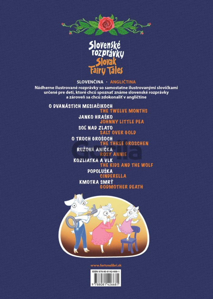 Knižka obsahuje 8 známych rozprávok v slovenskej a anglickej verzii: