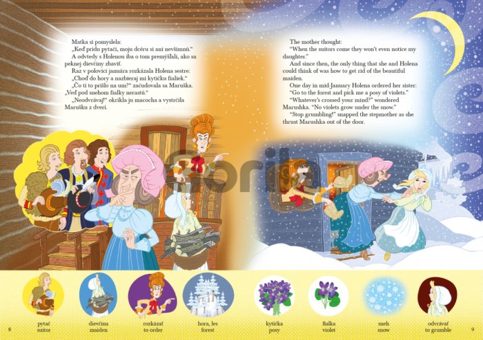 Nádherne ilustrované rozprávky so samostatne ilustrovanými slovíčkami určené pre deti, ktoré chcú spoznať známe slovenské rozprávky a zároveň sa chcú zdokonaliť v angličtine.