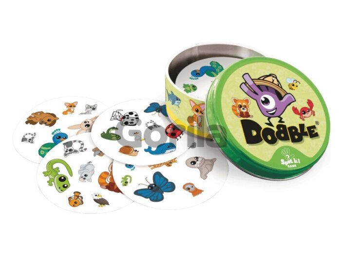 Dobble ZOO je skvelá postrehová hra s jednoduchými pravidlami. Plechová krabička obsahuje 55 kruhových kariet. Na každej karte je osem odlišných a rôzne veľkých zvierat. Akékoľvek dve karty majú práve jeden z obrázkov rovnaký. Základným princípom hry Dobble je čo najrýchlejšie tento obrázok nájsť. Vyskúšať môžete postupne hneď 5 variantov hry.