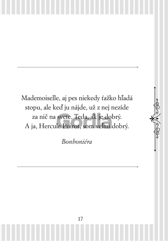Zábavná i poučná knižka výrokov najslávnejšieho knižného detektíva všetkých čias obsahuje aj exkluzívnu esej Agathy Christie o jej rozporuplnom vzťahu k najznámejšej postave, akú kedy vytvorila.