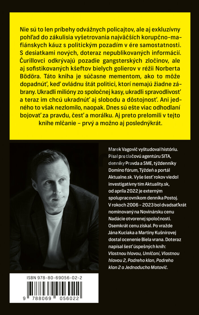 Po románových thrilleroch Padreho klan a Padreho klan 2 sa investigatívny novinár Marek Vagovič vracia k literatúre faktu. Na takmer 330 stranách opisuje strhujúce príbehy policajtov okolo Jána Čurillu, ktorí sa tvrdou prácou vypracovali na elitu vo svojom odbore. Najskôr postavili pred súd najobávanejšie zločinecké skupiny v krajine – piťovcov, sýkorovcov, sátorovcov, takáčovcov. Viacerých chcela mafia zabiť, takže chodili ozbrojení alebo s ochrankou.