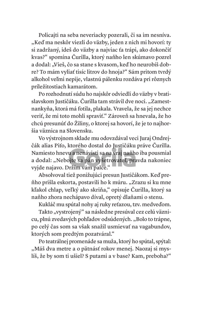S desiatkami nových, doteraz nepublikovaných informácií. V rozhovoroch s autorom knihy, ktorý s nimi strávil desiatky hodín, odkrývajú pozadie najbrutálnejších gangsterských zločinov, ale aj sofistikovaných kšeftov bielych golierov v réžii Norberta Bödöra. Mimoriadne otvorene približujú jednak výsluchy hrubokrkých sadistov, ktorí porcovali a mleli svoje obete ako na zabíjačke. Ale aj záťahy kukláčov a vypočúvanie prominentov na čele s Tiborom Gašparom, ktorí riadili políciu ako organizovanú skupinu. Vyšetrovatelia okolo Jána Čurillu sa vracajú aj k udalostiam po voľbách 2023, kedy ich minister vnútra Matúš Šutaj Eštok (Hlas) postavil mimo služby. Odvtedy sú de facto v domácom väzení a čakajú na súdny proces, pričom je im výrazne krátená mzda. Bez servítky tiež hovoria o atmosfére v polícii po rozprášení NAKA, ale aj o nadpráci prokuratúry pod vedením Maroša Žilinku.