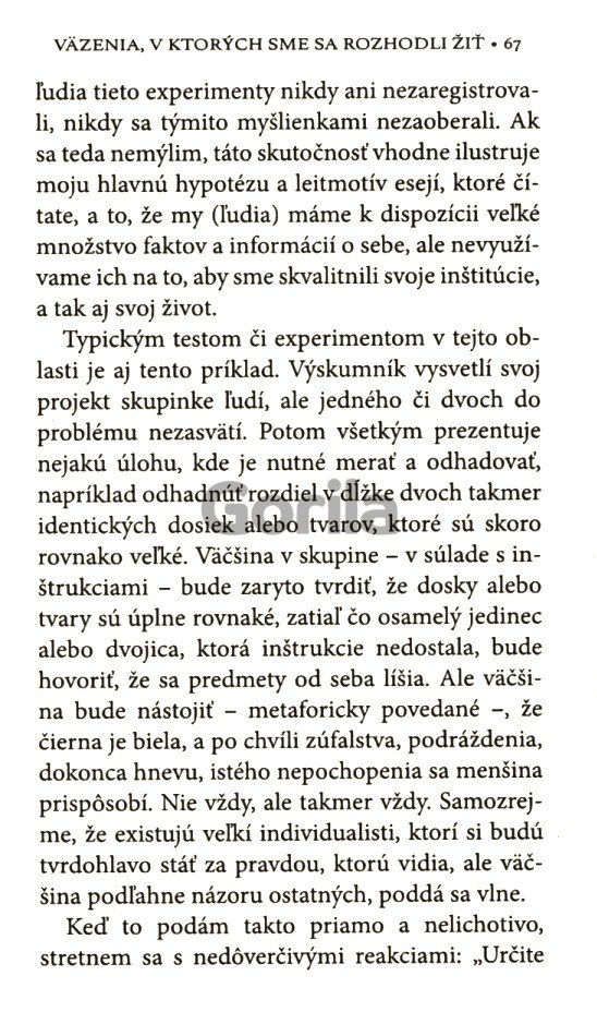„Samozrejme, že sa nájdu originálne mysle, ľudia, ktorí si stoja za svojím, ktorí sa nestanú obeťou potreby hovoriť alebo robiť to, čo všetci ostatní. Ale je ich málo. Veľmi málo.“