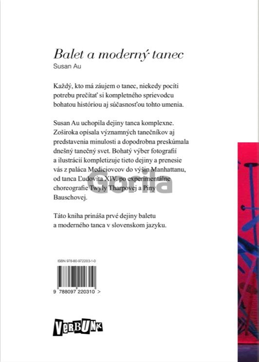 Susan Au uchopila dejiny tanca komplexne. Bohatý výber fotografií a ilustrácií kompletizuje tieto dejiny a prenesie vás z paláca Mediciovcov do výšin Manhattanu, od tanca Ľudovíta XIV. po experimentálne choreografie Twyly Tharpovej a Piny Bauschovej.