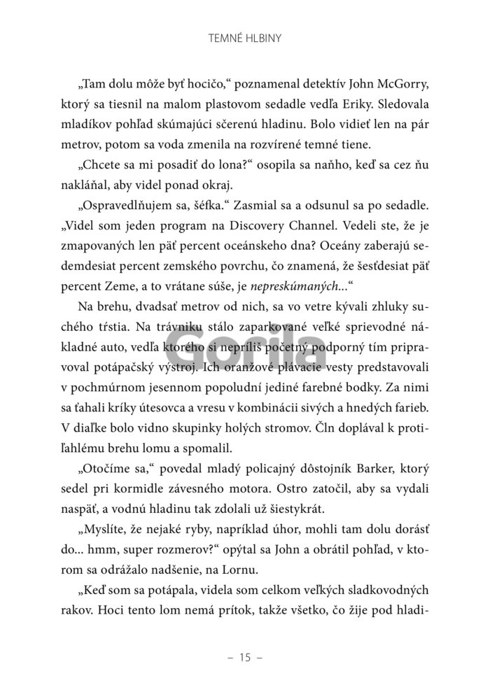 Nakladateľstvo Cosmopolis, súčasť Nakladateľského domu Grada, vydáva tretí prípad Eriky Fosterovej s názvom Temné hlbiny. Po veľkom úspechu, ktorý zaznamenali knihy Dievča v ľade a Nočný lov, ide o ďalší strhujúci príbeh plný nečakaných zvratov a napätia do poslednej stránky. Znovu sa stretávame s vyšetrovacím tímom Eriky Fosterovej, ktorý si svetoví aj slovenskí čitatelia tak obľúbili.