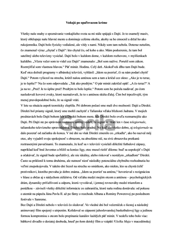 Čo je to sloboda? Ľahká otázka, však? Ale odpoveď taká jednoduchá nie je. Lea Ypi sa ju rozhodla pohľadať vo svojom detstve a dospievaní, keď sa v jej rodnom Albánsku rúcal totalitný režim a krajina sa vydávala na cestu k slobode. Do Albánska zaviali nové vône, ale aj zmätok a nepoznaná neistota.