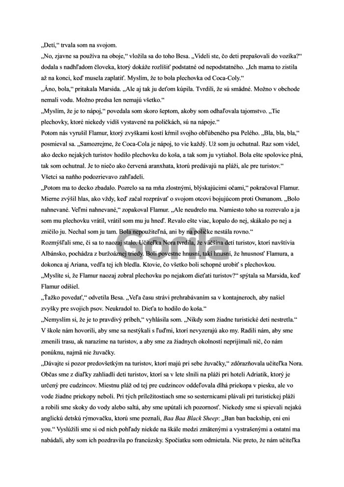 V decembri 1990 sa všetko zmenilo. Pomníky starých vodcov boli zvrhnuté a ľudia si nových vládcov zrazu mohli vybrať sami. Už sa nemuseli báť zvedavých očí ani príliš tenkých stien, už nemuseli túžiť po prázdnych plechovkách od Coca-Coly, ktoré dodávali ich domácnostiam punc jedinečnosti. Čoskoro sa však začali zatvárať prvé továrne, finančné pyramídy priviedli štát ku krachu a v uliciach vypukli nepokoje. Tisíce ľudí utiekli do Talianska, aby sa po ponižujúcej procedúre museli vrátiť do slobodnej krajiny, ktorá im už nemala čo ponúknuť. Lea Ypi sa vracia do svojho detstva a dospievania, aby tieto chvíle prežila znova, a aby pochopila, prečo ju rodičia nechali žiť v ilúzii dokonalej krajiny, hoci sami patrili medzi disidentov a totalitnému režimu neverili. S jedinečným nadhľadom a humorom opisuje svoje prežívanie politických zemetrasení i odhaľovanie rodinných tajomstiev, keď sa zároveň rúcali aj všetky jej predstavy o svete. Výborná a mimoriadne osobná reportážna kniha Slobodná vychádza v preklade Ivany Krekáňovej.