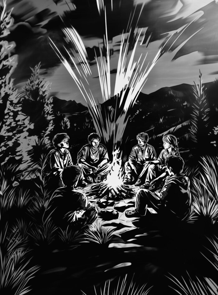 Vo voľnom pokračovaní legendárneho románu Tajomstvo Dračej steny sa naši známi hrdinovia z Atómovej Lehoty vyberú na výlet do hôr. Keď sa skalný kopec začne ponárať do tmy, okrem svetielok svätojánskych mušiek si kamaráti všimnú aj iné, veľmi nezvyčajné svetlo. V kroví objavia sedem kociek, ktoré ukrývajú modrý oheň.