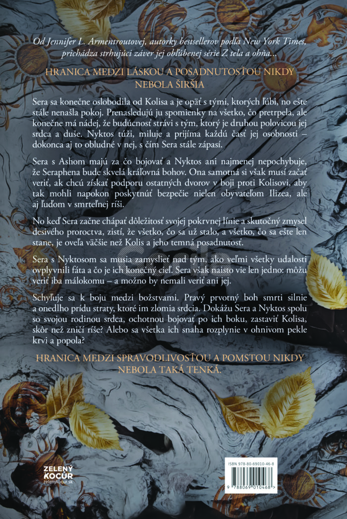 Schyľuje sa k boju medzi bohmi. Pravý prvotný boh smrti silnie a onedlho ich čakajú straty, ktoré im zlomia srdcia. Dokážu Sera a Nyktos spolu so svojou rodinou srdca, ochotnou bojovať po ich boku, zastaviť Kolisa, skôr ako zničí ríše? Alebo sa všetka ich snaha rozplynie v ohnivom pekle krvi a popola?