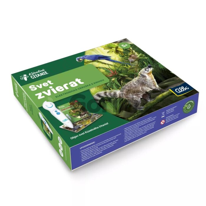 Obsah balenia: hovoriace pero Albi, kniha Svet zvierat, nabíjačka, kábel USB, sprievodca Kúzelným čítaním, 10 kusov samolepiek prehrávača, 10 kusov samolepiek ovládania hlasitosti.