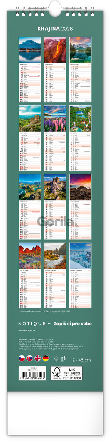 Viac o NOTIQUE Nástěnný kalendář / nástenný kalendár Krajina 2026 - Séria Kalendáre / kalendáře 2026 – kravata / vázanka