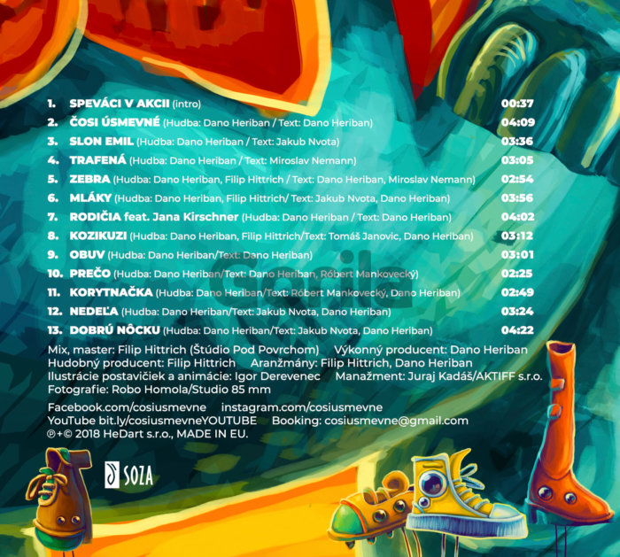 S obrovskou a nefalšovanou radosťou vám predstavujeme nový hudobný album Dana Heribana Čosi úsmevné. Pripravovali sme ho viac ako rok, obsahuje 12 pesničiek a je plný dobrodružstiev a krásnych príbehov. Album je venovaný najväčším pokladom na svete, našim deťom. Na svoje si však prídu aj všetci rodičia, ktorí majú radi dobrú muziku a nechcú sa pri počúvaní detskej hudby nudiť.