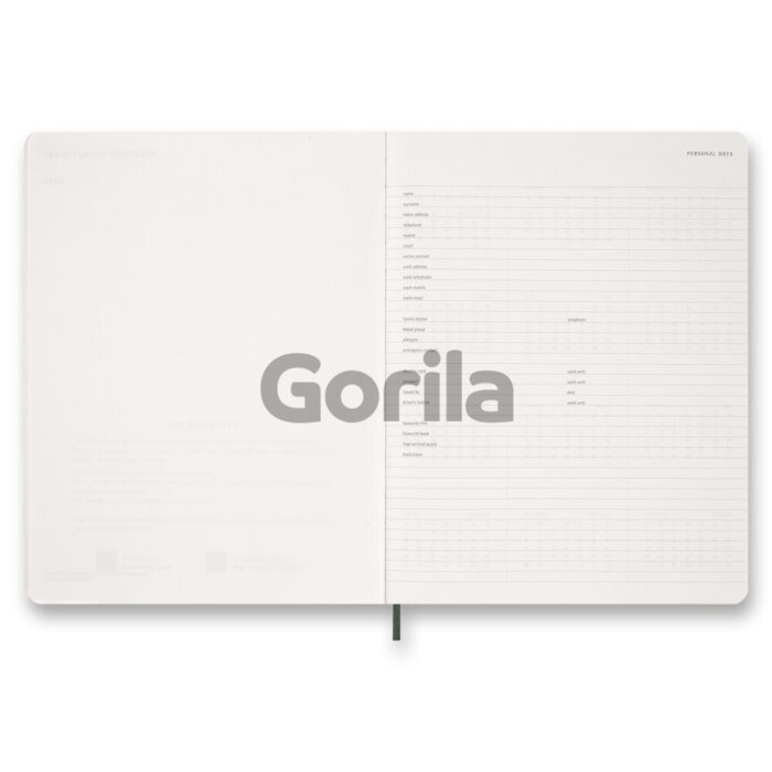 15-mesačný diár Moleskine Essential, kalendár od októbra 2025 do konca decembra 2026.