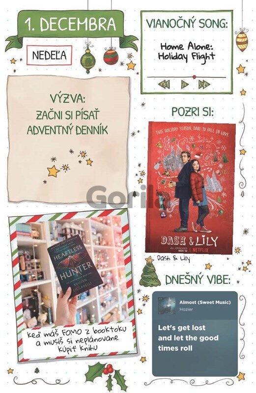 Addie zbožňuje Vianoce, no tento rok sa zdá, že jej najobľúbenejšie obdobie sa mení na jednu veľkú katastrofu. Rodičia sú preč, jej najlepší kamarát sa sťahuje a okrem toho ju ohovára polovica školy. Prvého decembra sa však stane niečo, vďaka čomu dá sviatkom ešte jednu šancu: dostane adventný kalendár plný rôznych úloh a navyše stretne Jaxona. Ten sa mal v tejto chvíli pripravovať na kariéru v NHL, no namiesto toho sa objaví v Addinom obľúbenom kníhkupectve a dá jej ponuku, ktorú nedokáže odmietnuť...