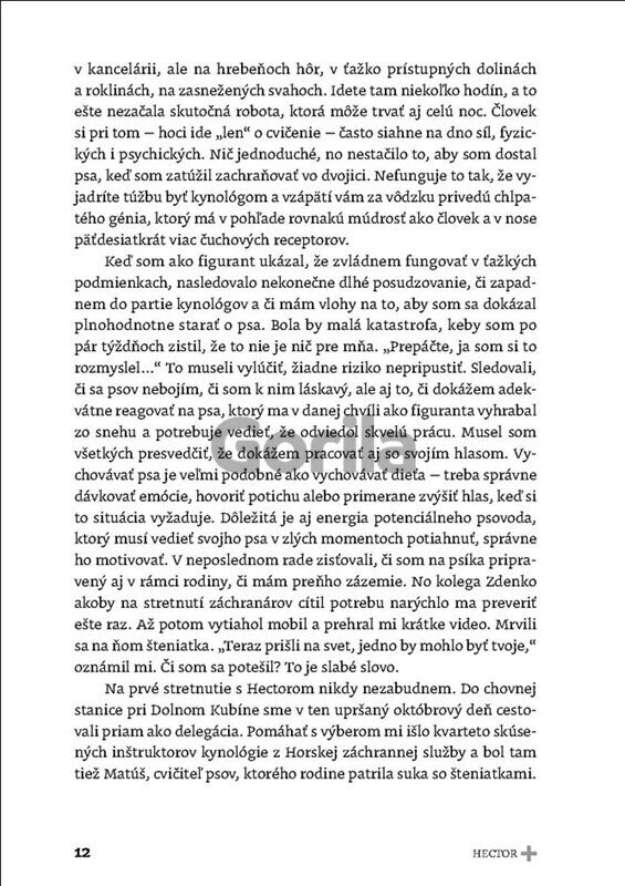Hector je autentická kniha o priateľstve a odvahe, plná napínavých záchranných akcií v horách, po zemetrasení či výbuchu bytovky z pohľadu horského záchranára. Hlavnú úlohu však zohráva jeho štvornohý parťák Hector, ktorý mu bol v najťažších chvíľach oveľa viac, než len zvieracím pomocníkom. Dramatické príbehy z pátraní pretkávajú historky z Hectorovho výcviku, ale aj obyčajné chvíle medzi človekom a psom. Kniha je tiež vzdaním pocty slovenskej prírode a jej krásam, no mnohokrát aj neľútostným nástrahám.